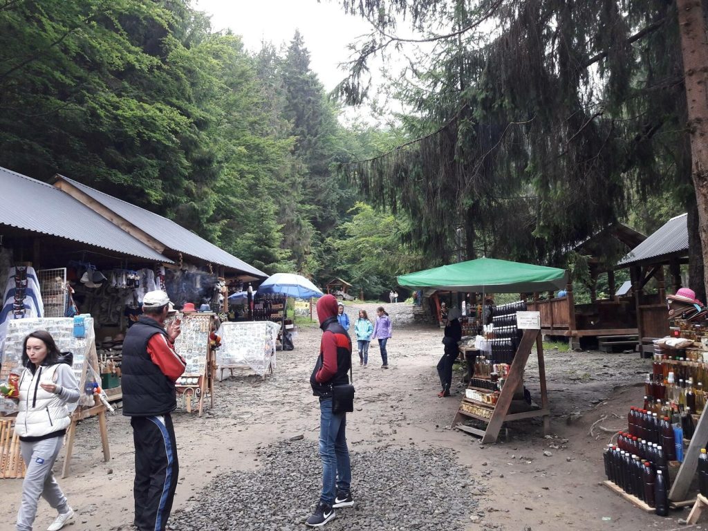Туристів біля Шипоту так багато, що вслід за ними до нього просувається й інфраструктура: міні-готелі, садиби з нічлігом, їжа. І ще багато чого. Наприклад, ледь не під сам водоспад просунулись і дивні конструкції з камінців від місцевого гуцула. На питання – «а що це?», він відповідає загадково: «та я ще багато всього цікавого вмію робити…»