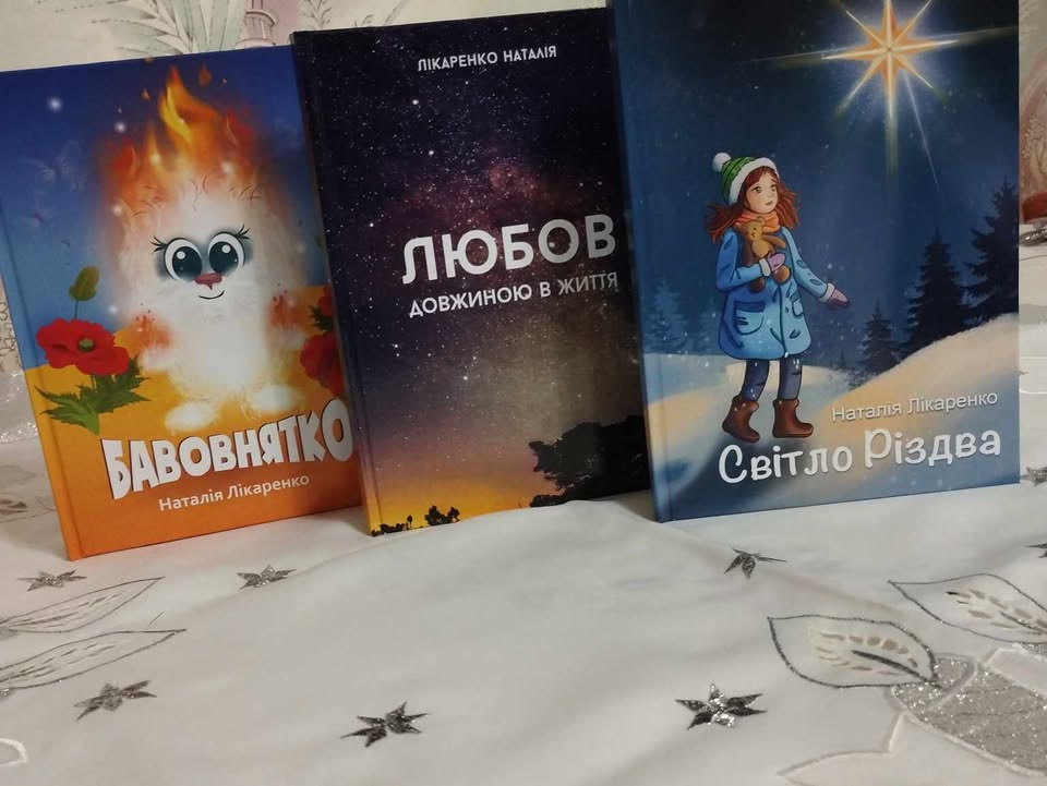 Мене звати Наталія Лікаренко, я зі Спілки літераторів «Славутич». Почала писати нещодавно. За півтора року маю три своїх видання: казка “Бавовнятко”(2023 р.), повість “Любов довжиною в життя”(2024 р.), оповідання “Світло Різдва”(2024 р.).