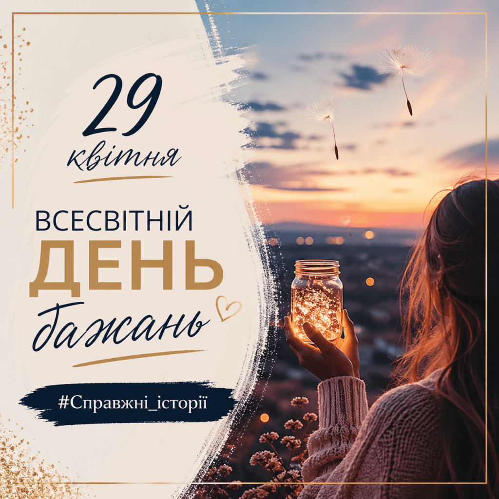 29 квітня – Всесвітній день бажань. Це день про загадкову силу мрії, яка, як виявляється, має найбільшу силу в світі. І часто здатна дати надію, коли її, здавалося б, уже немає.